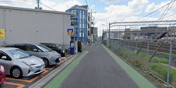 3.交差点を右折から、道なりに進み線路沿いを直進します