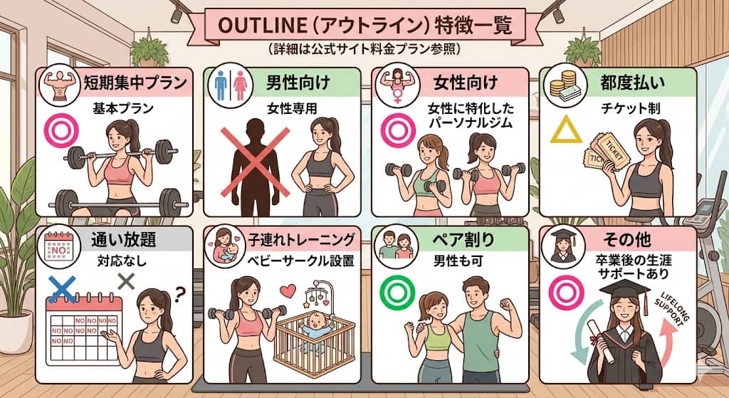 [図解:OUTLINEのプラン特徴(7種類のプラン対応状況)]