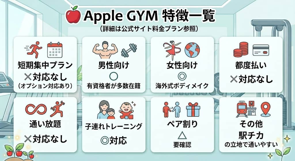 なお、Apple GYMのプラン特徴は、次の図解を確認してください。