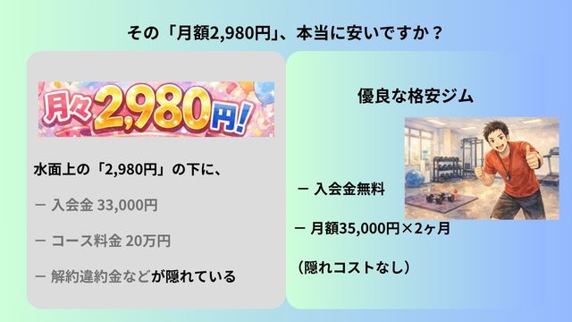 では、どうやって「人を削っていないジム」を見分ければいいのでしょうか? そして、広告に騙されずに本当の料金を知るにはどうすればいいのでしょうか?