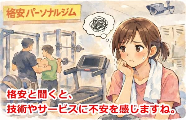 「安いジムって、トレーナーがアルバイトだったり、設備がボロボロだったりするんじゃないの?」。そんな不安を感じるのも無理はありません。