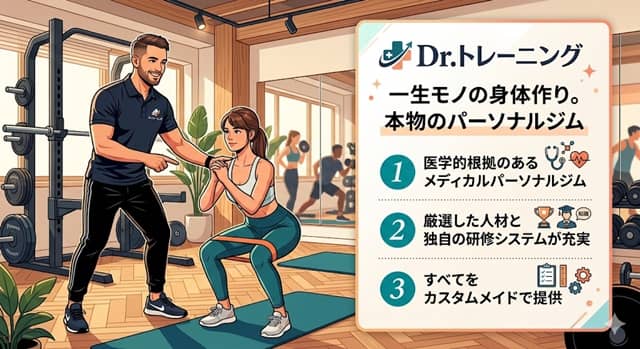 Dr.トレーニングは、単なるダイエットだけでなく、一生モノの身体づくりと、生涯役立つ知識の習得や食習慣の指導に期待ができます。
