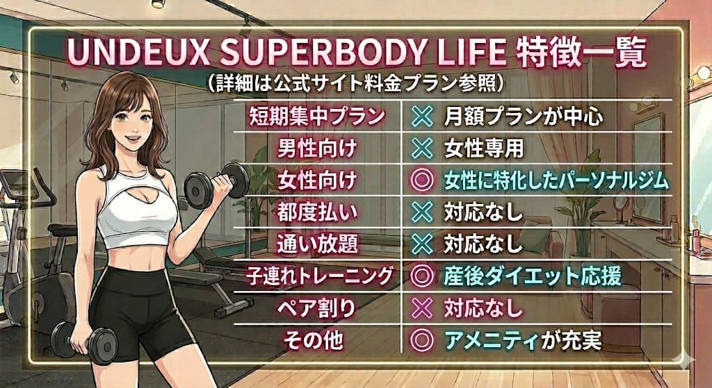 なお、UNDEUX SUPERBODY LIFEのプラン特徴は、次の図解を確認してください。