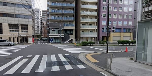 4.角を右折から道なりに150mほど進み「鶴屋町1丁目」交差点の横断歩道を渡り右折します