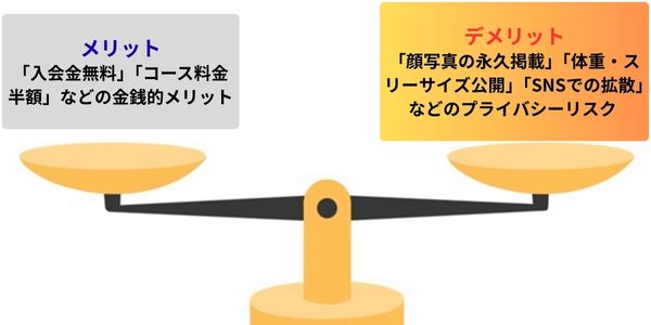 モニター割引とデジタルタトゥーのリスクは、明確なトレードオフ(交換条件)の関係にあります。割引額が大きければ大きいほど、ジム側はあなたの写真を徹底的に使い倒さなければ元が取れません。