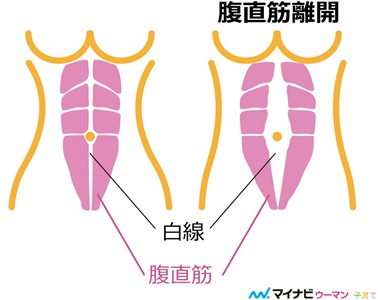 お腹を引き締めるには腹筋運動を行うが有効ですが、出産直後から始めるのはよくありません。というのも、妊婦さんの多くは妊娠中に腹筋(腹直筋)の間が開いてしまう「腹直筋離開」という状態が起こっているからです。