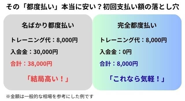 実は、多くのジムが検索でヒットするために「都度払い」という言葉を使っていますが、その実態は大きく異なります。