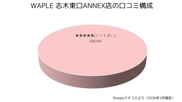 WAPLE 志木東口ANNEX店の口コミは、以下のような傾向がありとても満足度が高いと言えます。