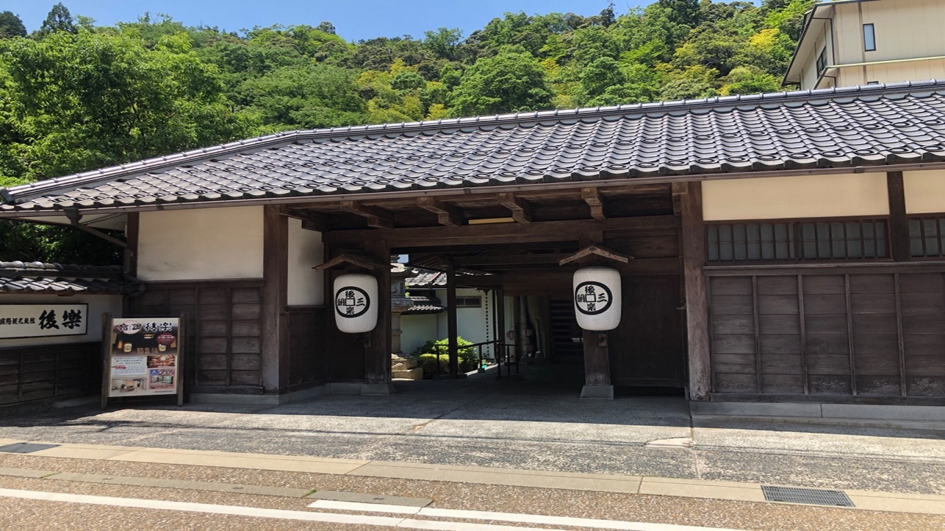 後楽さんは、総けやき欅造りの長屋門とロビーがあり、純日本建築の風格と歴史を伝える温泉宿です。