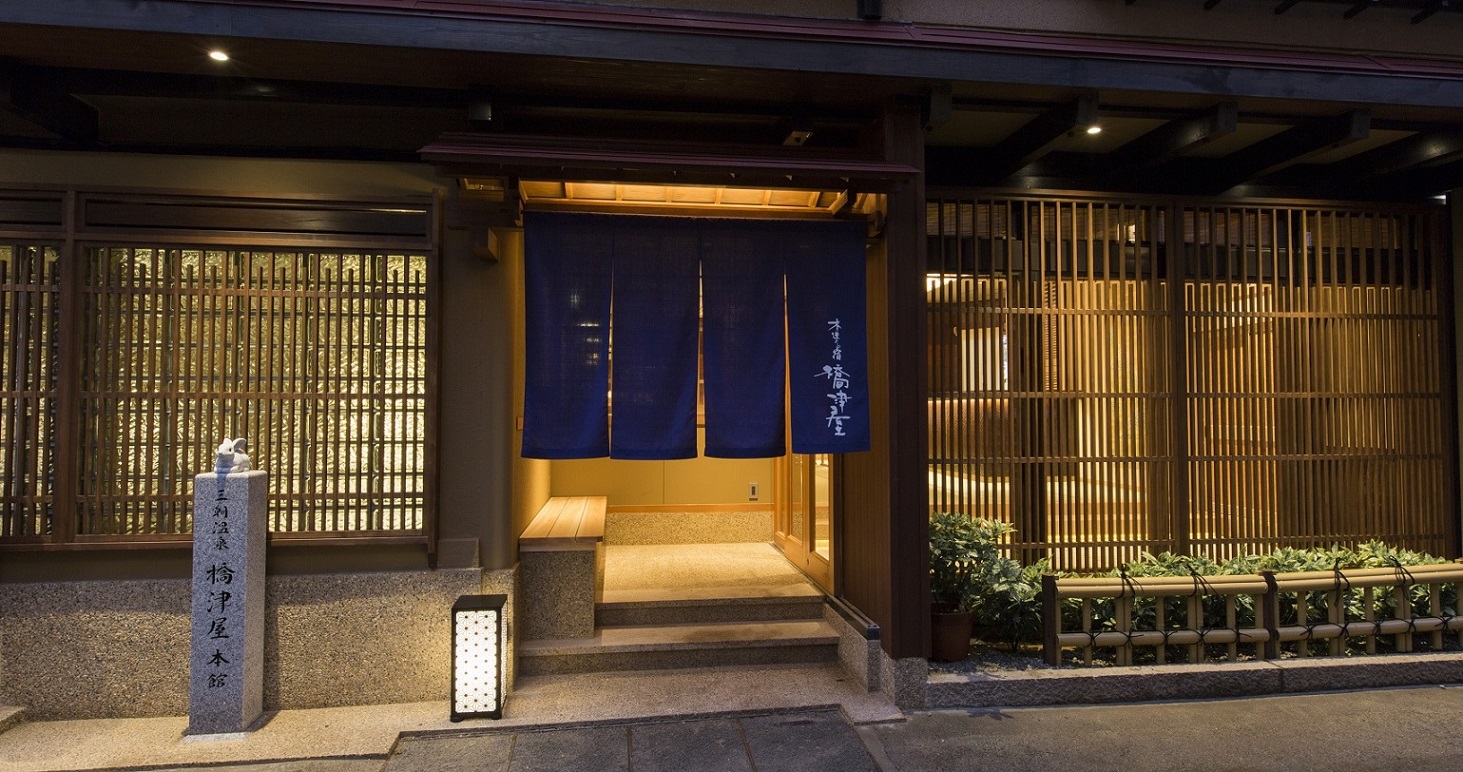 橋津屋さんは、三朝温泉街の中心にあり館内は総畳敷きの温泉宿です。